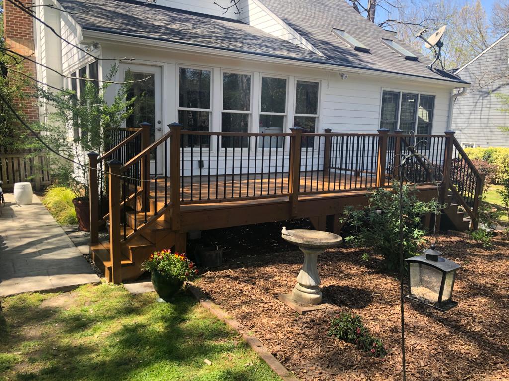Mario did a great job on my deck. His sanding job was also great. He meticulously covered all areas so no stain got on any surfaces other than the deck. The finish of the work was high quality (smooth) and there were no unfinished spots. Overall his value was also great compared to the Quotes I got.